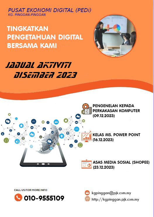 Tarikh : 12 Disember 2023 Masa : 09.00 Pagi – 01.00 Petang Lokasi : PEDi Kg. Pinggan-Pinggan Peserta : 46 Orang Tujuan Dengan menjalankan program seperti ini dapat membuka peluang PEDi menjalinkan hubungan baik dengan […]
