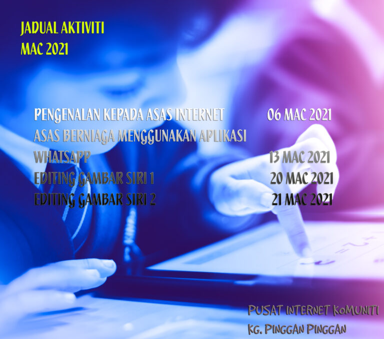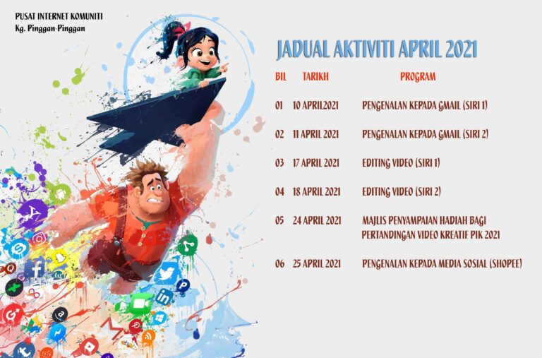 Tarikh : 09 Mei 2021 Masa : 09.00 Pagi – 01.00 Petang Lokasi : PIK Kg. Pinggan-Pinggan Peserta : 5 Orang Tujuan Tujuan program ini adalah bagi memberi pendedahan kepada golongan kanak-kanak terhadap cara penyuntingan […]