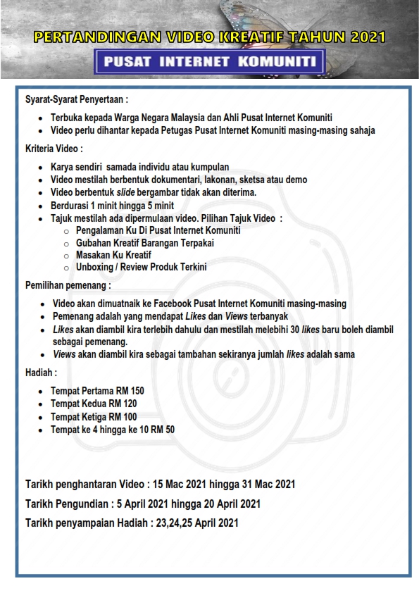 Bazar NADI merupakan sebahagian daripada inisiatif Perkhidmatan Pintar NADI, Pejabat NADI, MCMC mencadangkan penganjuran Bazar Raya NADI secara serentak di semua NADI yang beroperasi di seluruh negara. Program ini mendapat sokongan daripada YBhg. Tan Sri Pengerusi MCMC dalam usaha memperkasakan usahawan tempatan, memperluaskan peluang pasaran, serta menarik lebih […]