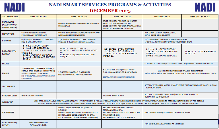 JADUAL AKTIVITI SMART SERVICE DISEMBER 2025