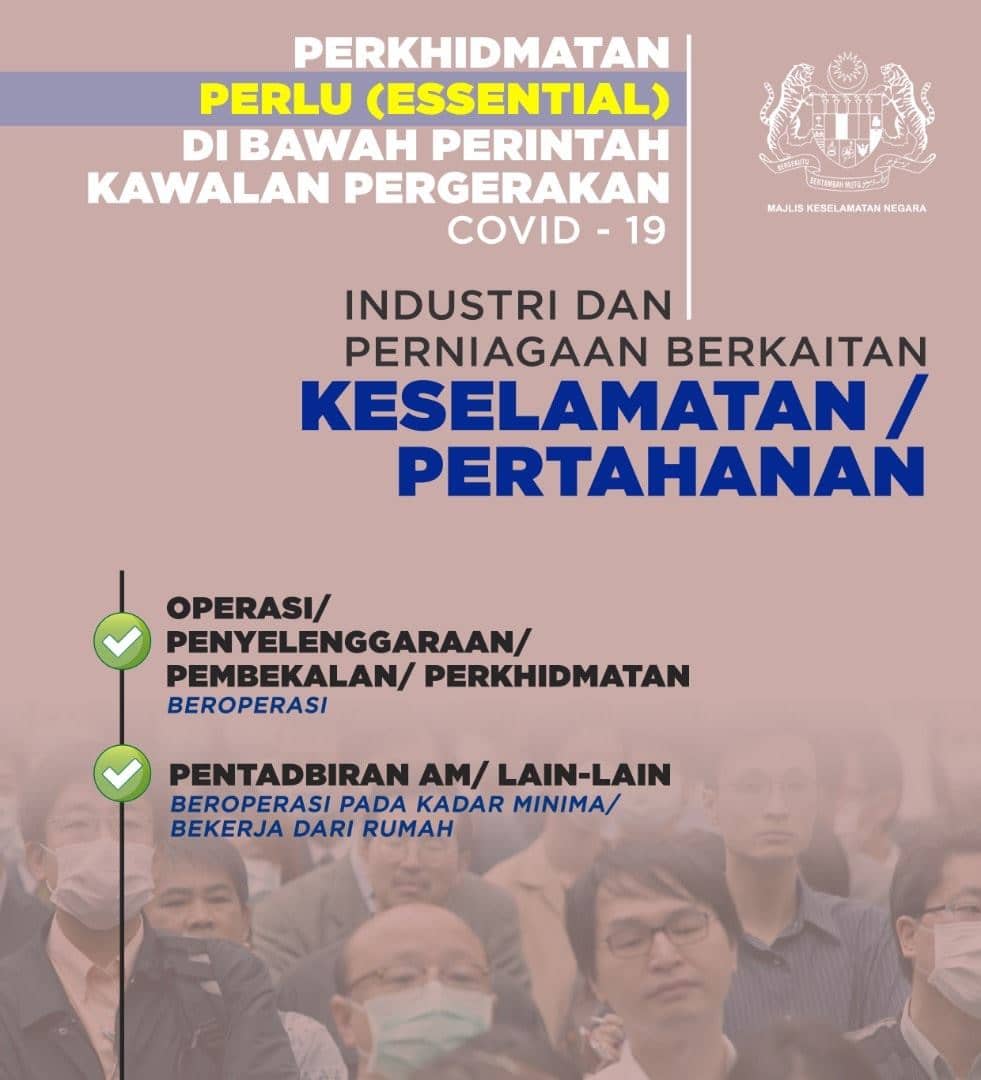 Perkhidmatan Perlu (ESSENTIAL) Di Bawah Perintah Kawalan Pergerakan COVID – 19